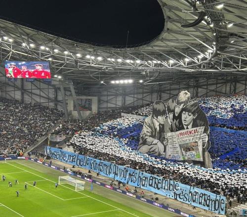 友好,对阵利物浦前马赛主场看台打出致敬披头士的TIFO